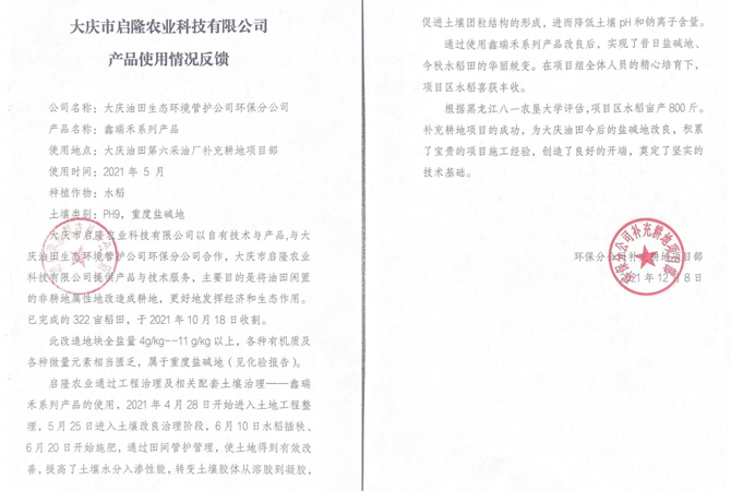 與多所高校、研究院、各大種業(yè)企業(yè)合作種植改良鹽堿地水稻。在黑龍江、吉林、內蒙古等地有多處示范基地。在新疆等地區種植草木,環(huán)境綠化等工程。幾年來,啟隆人大力弘揚“創(chuàng)新、堅韌、拼搏、開拓”的企業(yè)精神,在研發(fā)上勇攀高峰。大慶啟隆 的企業(yè)宗旨是“誠信于鹽堿地的朋友,服務于鹽堿地的朋友”,努力為鹽堿地改良做出積極的貢獻。